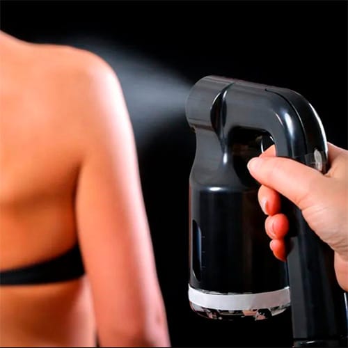 Korkealaatuinen väriaine suihkutetaan vartalolle hienojakoisena sumuna, joka varmistaa tasaisen levityksen ja upean hehkuvan rusketuksen.